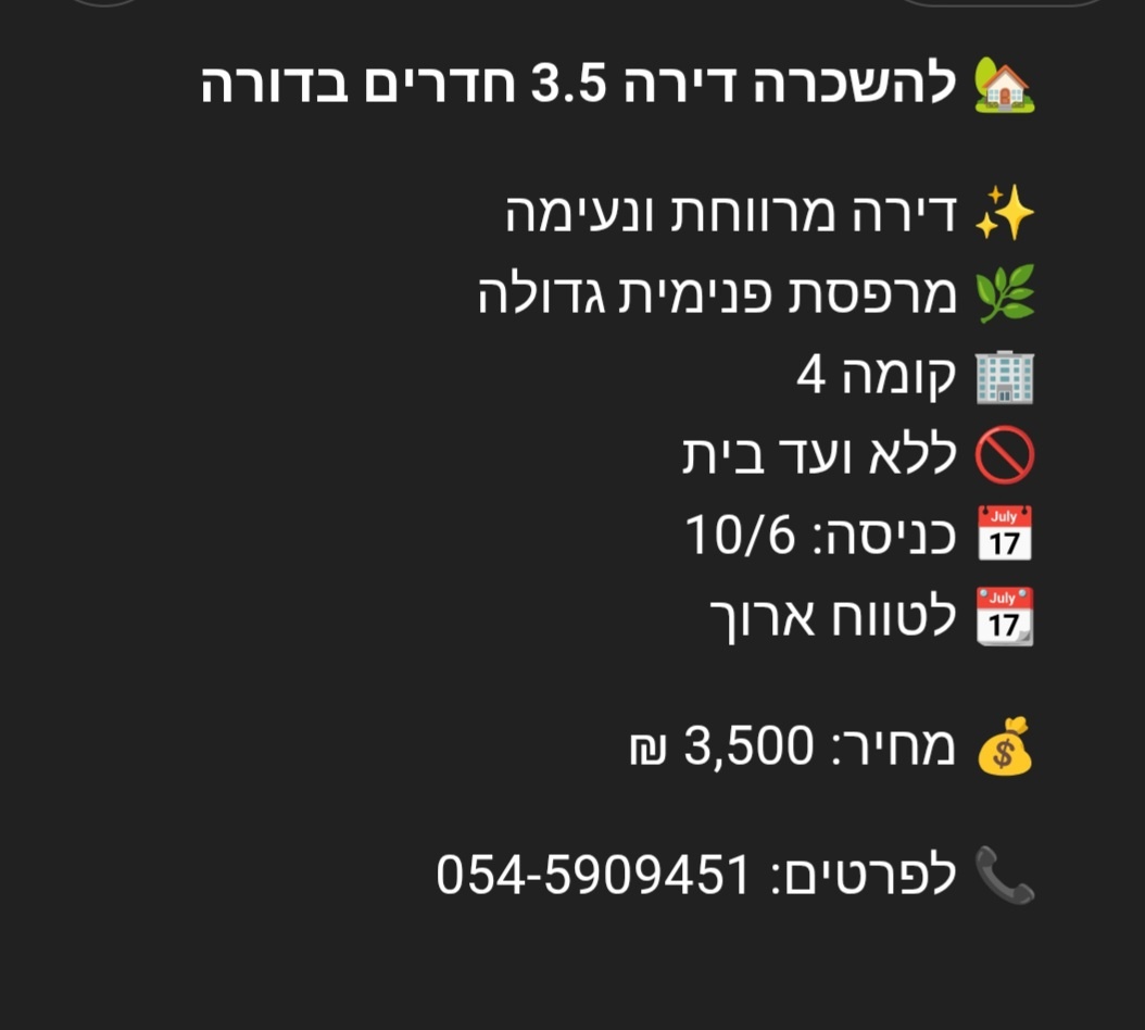 השאירו הודעה או צפו בפרטי הקשר של המפרסם